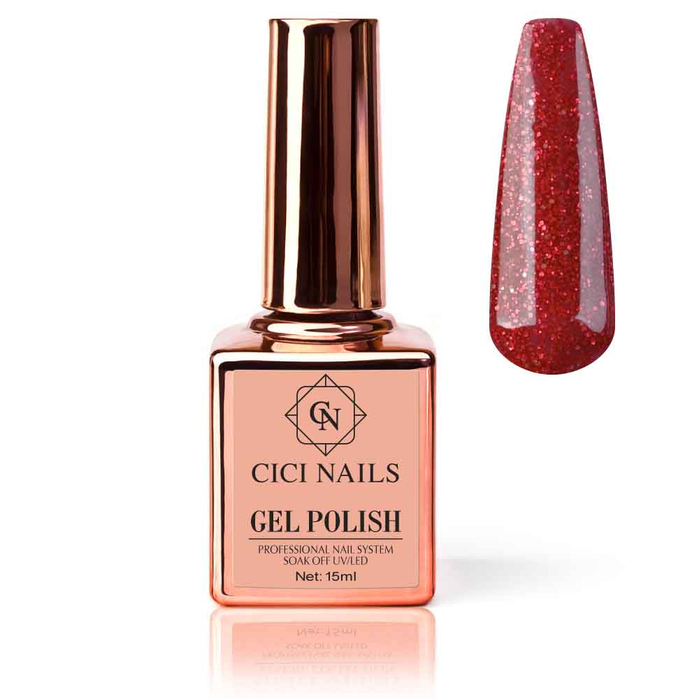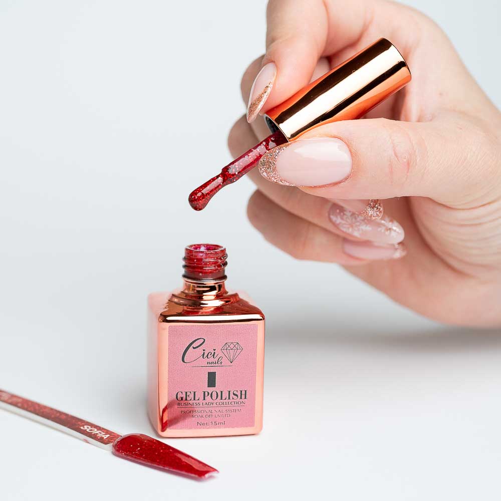 Sofia 15ml – Šljokasto crvena boja za nokte donosi strast i energiju! Oživite svoj stil s ovim zavodljivim tonom. Naručite svoju boju odmah i zasjajte!